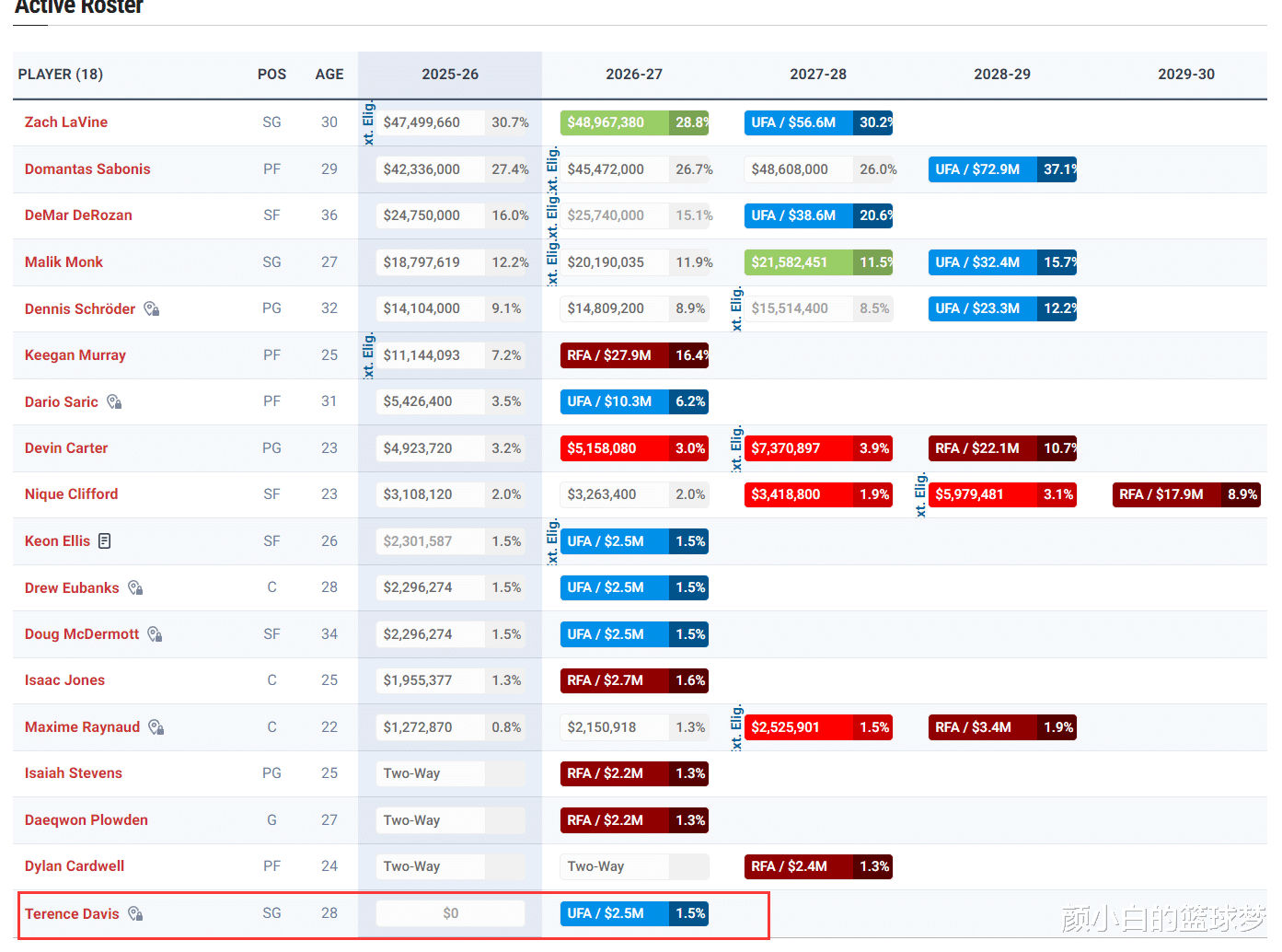 Nhưng Kings đã có đội hình 15+3: LaVine, Sasha, DeRozan, Monk, Schroder, Murray, Carter, Saric, Clifford, Eubanks, McDermott, Jones, Ellis, Leno, Terrance Davidson; Stevens, Proden, Caldwell (ba người hai chiều). {3 khiến chúng ta thấy rằng chi tiết hợp đồng của Terence Davidson rất mơ hồ. Anh ấy không phải là một hợp đồng được đảm bảo đầy đủ và Kings chưa bao giờ tiết lộ chi tiết về hợp đồng của anh ấy. Theo phóng viên Kenny Smith của NBA, Davidson có khả năng sẽ ký hợp đồng Exhibit 10 với Kings. Các vị Vua có thể từ bỏ anh ấy trước khi mùa giải mới bắt đầu và để anh ấy chơi cho các vị Vua trong Liên đoàn phát triển.
