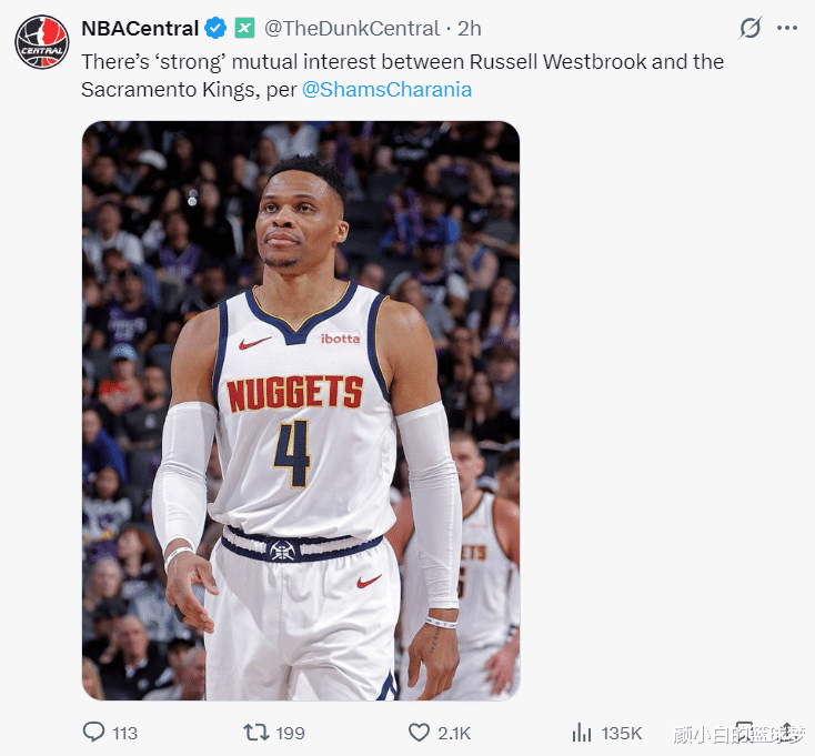 Một ngày trước, phóng viên Carmichael Dave của Kings tiết lộ rằng Westbrook đã nhận được lời đề nghị từ một đội tuyển Trung Quốc. Lời đề nghị này cao gấp bốn lần những gì Kings có thể đưa ra, và hợp đồng chỉ còn nửa mùa giải. (Nhưng xét theo tin tức hôm nay, Westbrook vẫn muốn thi đấu ở NBA)