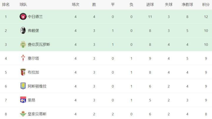 Nhiều đội bóng có giá trị cao ở 5 giải đấu lớn đã bị Midtjylland bỏ lại phía sau. Aston Villa trị giá tới 540 triệu euro ghi được 9 điểm với 3 trận thắng và 1 trận thua. Roma trị giá 400 triệu euro có 2 trận thắng, 2 trận thua và chỉ ghi được 6 điểm. Stuttgart trị giá 330 triệu euro cũng có 2 trận thắng và 2 trận thua, chỉ ghi được 6 điểm. Nottingham Forest trị giá 640 triệu euro chỉ có 1 trận thắng, 2 trận hòa và 1 trận thua và chỉ ghi được 5 điểm.